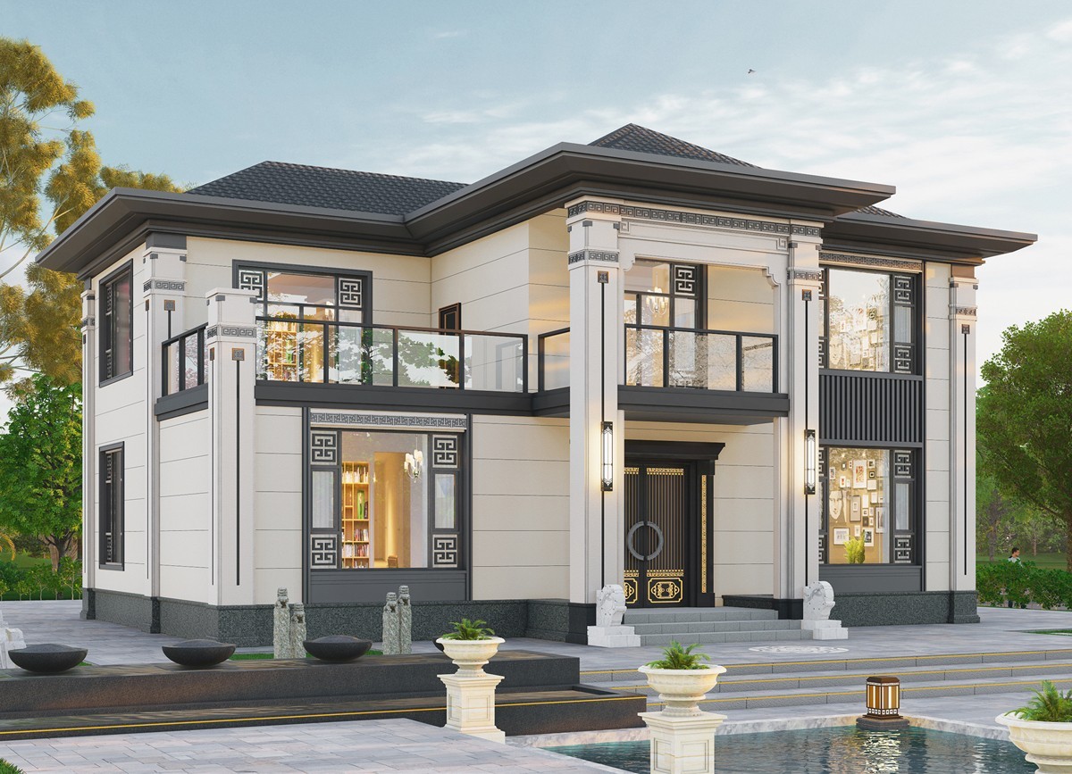 武清005 两层新中式(11.36x11.76米)-【易设计】